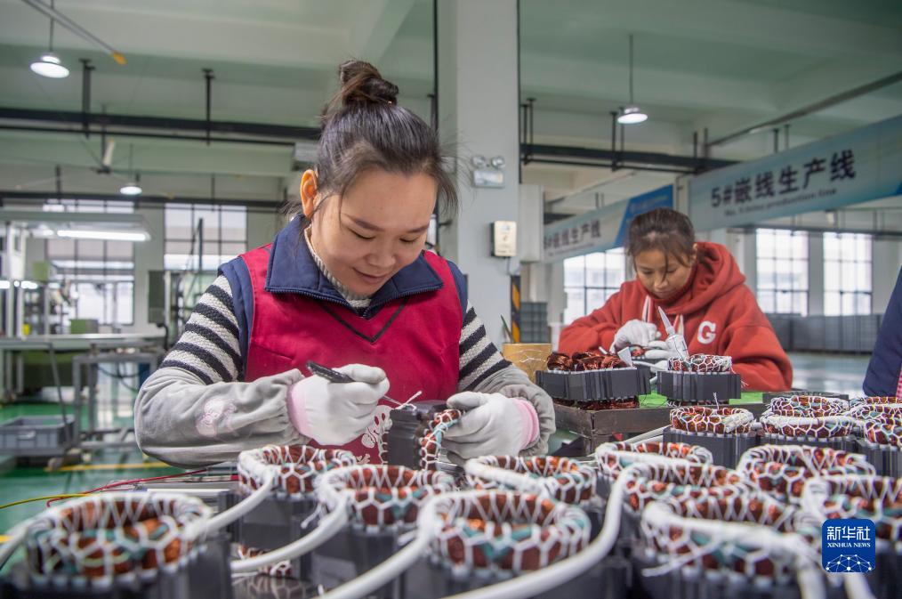 12月18日,在四川省广安市广安区临港经开区南洋电机公司,工人在生产电机产品。