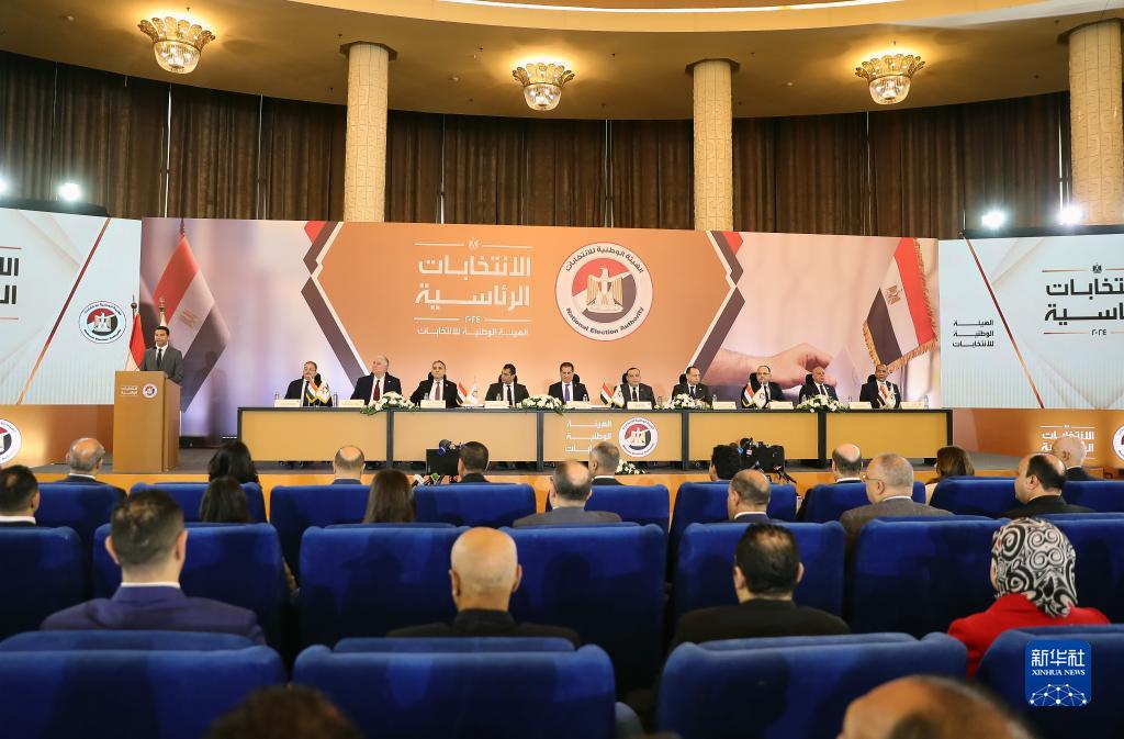 这是12月18日在埃及首都开罗拍摄的埃及全国选举委员会新闻发布会现场。