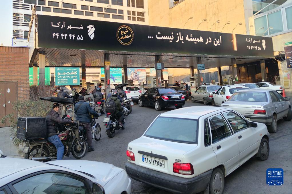 12月18日,车辆在伊朗首都德黑兰的一家加油站外排队等待加油。
