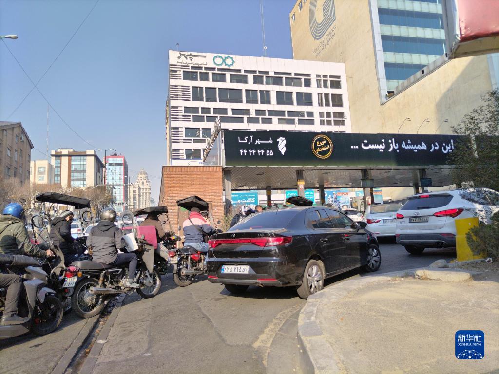 12月18日,车辆在伊朗首都德黑兰的一家加油站外排队等待加油。