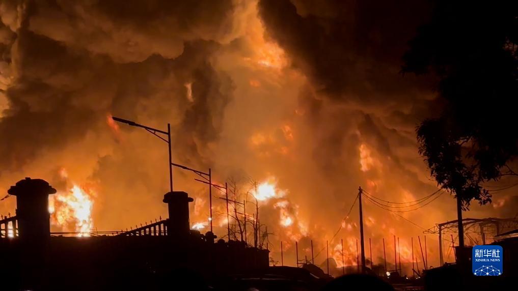 这是12月18日在几内亚首都科纳克里拍摄的燃油仓库火灾现场。