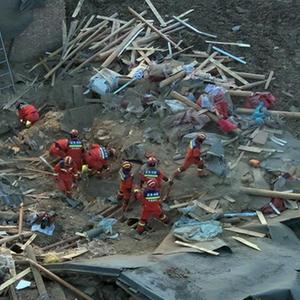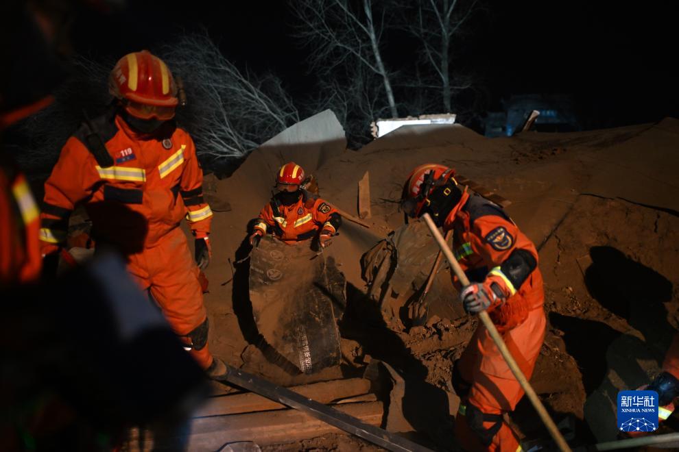 12月19日,在青海省海东市民和回族土族自治县中川乡草滩村,海东市消防救援支队队员在搜救。