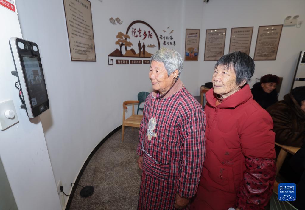 12月19日,在金华市婺城区新狮街道后垅社区居家养老服务照料中心,老人们通过智能终端刷脸就餐。