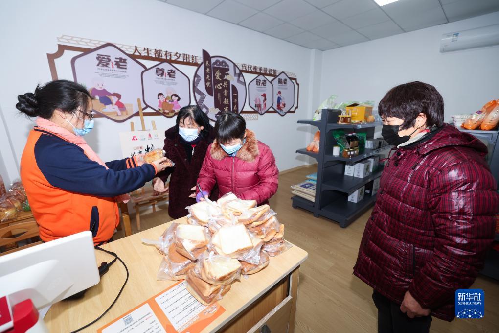 12月19日,在金华市婺城区新狮街道柳湖花园社区居家养老服务照料中心,养老护理员给老人们发放“共享粮仓”爱心餐。