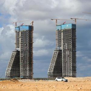 由中国建筑股份有限公司埃及分公司(中建埃及)承建的埃及阿拉曼新城超高综合体项目D01住宅楼18日率先封顶,为整个项目主体结构封顶拉开序幕。该项目工程范围包括设计和建造1座高度约300米的标志塔、4栋超高层住宅及商业配套和市政景观工程,建筑总面积约109万平方米。
