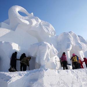 目前,第36届哈尔滨太阳岛国际雪雕艺术博览会在紧张建设中,雪雕师加紧进行雕刻作业。本届太阳岛“雪博会”总用雪量15万立方米,主塑用雪量达3.5万立方米。