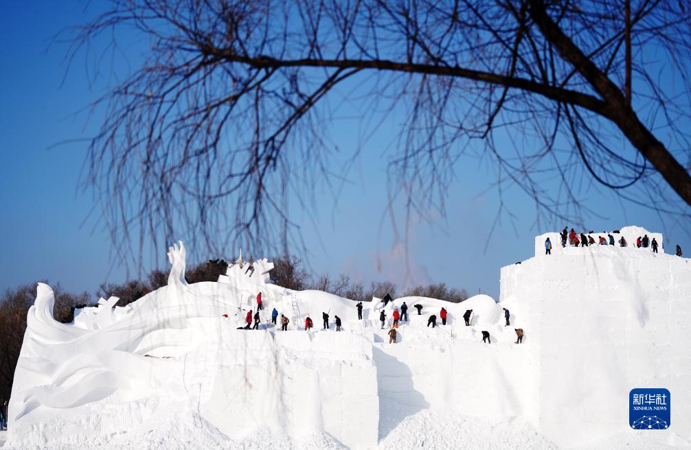 目前,第36届哈尔滨太阳岛国际雪雕艺术博览会在紧张建设中,雪雕师加紧进行雕刻作业。本届太阳岛“雪博会”总用雪量15万立方米,主塑用雪量达3.5万立方米。