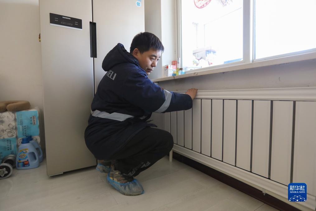 12月18日,沈阳天润热力的工作人员在沈阳市苏家屯区一居民家中了解室内供暖情况。