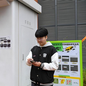 12月19日,一名学生在位于清华大学深圳国际研究生院的无人机空投柜旁点餐。