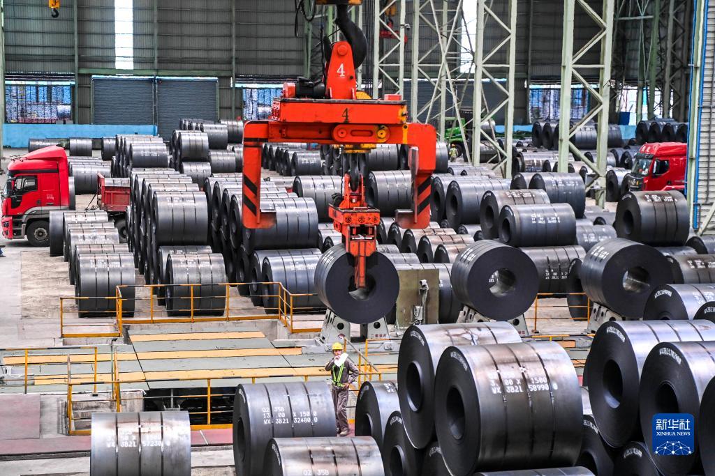这是12月19日在广西防城港市一家钢铁生产企业内拍摄的成品钢卷。