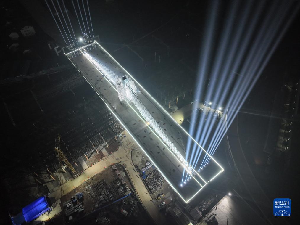 12月20日凌晨拍摄的完成转体施工的矮塔斜拉桥。