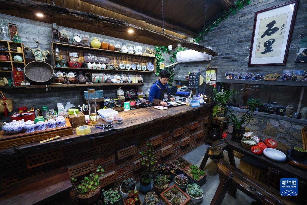 12月19日,双合村石里民宿的民宿主张瑛在民宿内核对客人信息。张瑛和丈夫王代明都是当地渔民,他们将老房子进行改造,成了当地的网红民宿,吸引不少外地客人前来吃饭、住宿。
