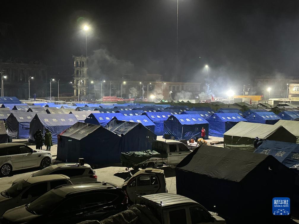 这是甘肃省积石山县大河家镇大河村的临时安置点(12月19日摄)。