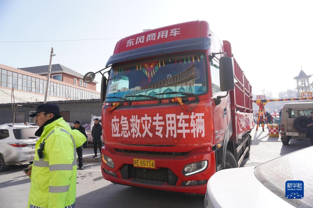 12月20日,一辆应急救灾专用车辆驶入积石山县大河家镇大河村安置点。