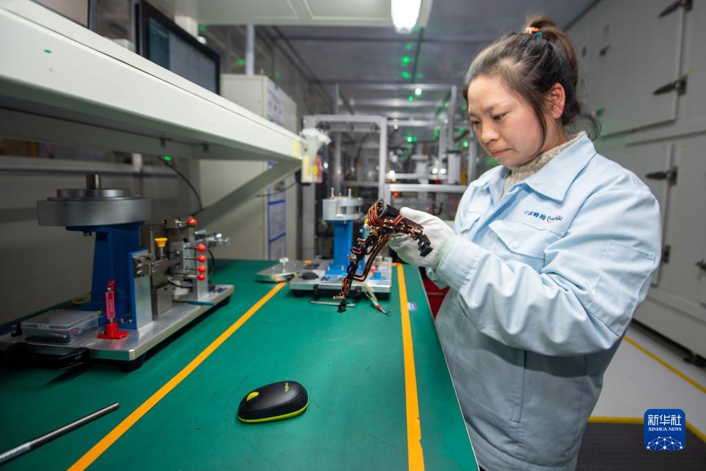 12月20日,工人在宁波峰梅新能源汽车科技股份有限公司生产线上工作。