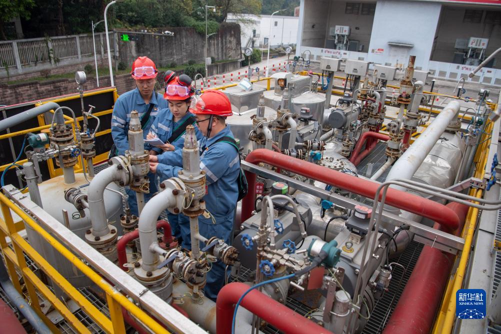 12月20日,在位于重庆市长寿区的供氢中心内,工作人员在氢气纯化装置前进行巡检工作。