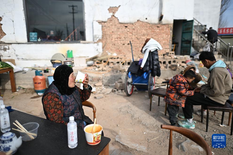 12月20日,在青海省民和县官亭镇,当地群众在拉面摊上吃面。