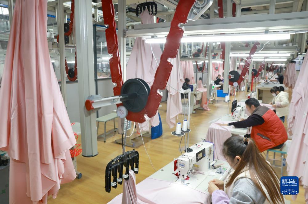 12月20日,在江苏南通海门区三星镇南方寝饰(南通)纺织科技有限公司,工人在智能车间加工家纺产品。