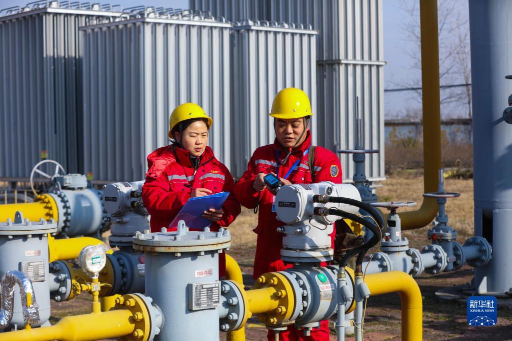 12月21日,在河南省信阳市光山县一家天燃气公司供气门站,工人记录相关数据。
