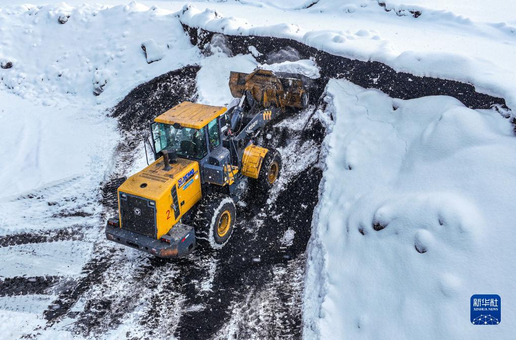 12月21日,在山东省荣成市热电厂,工作人员驾驶机械在运输电煤(无人机照片)。