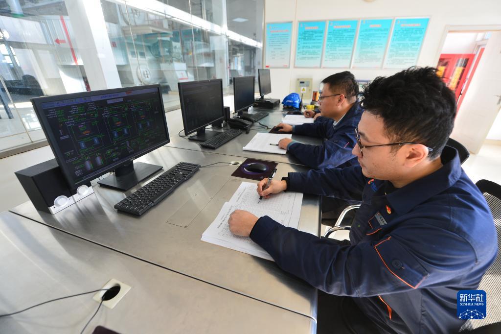 12月21日,在山东省青岛市市南区云南路街道辖区,热电公司的工作人员在监控天然气锅炉运行参数。