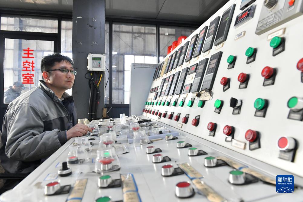 12月21日,在河南省夏邑县一家供暖公司总控室,工作人员在操作控制设备。