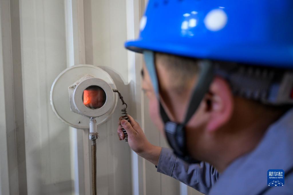 12月21日,呼和浩特市城发供热有限责任公司桥靠分公司工作人员对供热设备进行巡检。