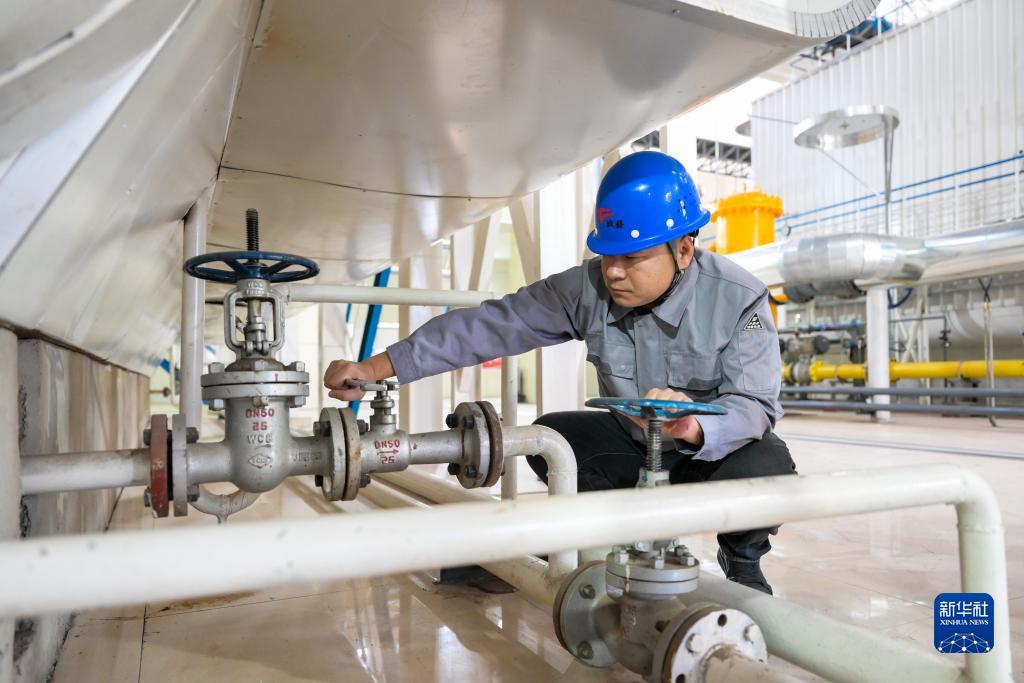 12月21日,呼和浩特市城发供热有限责任公司桥靠分公司工作人员对供热设备进行巡检。