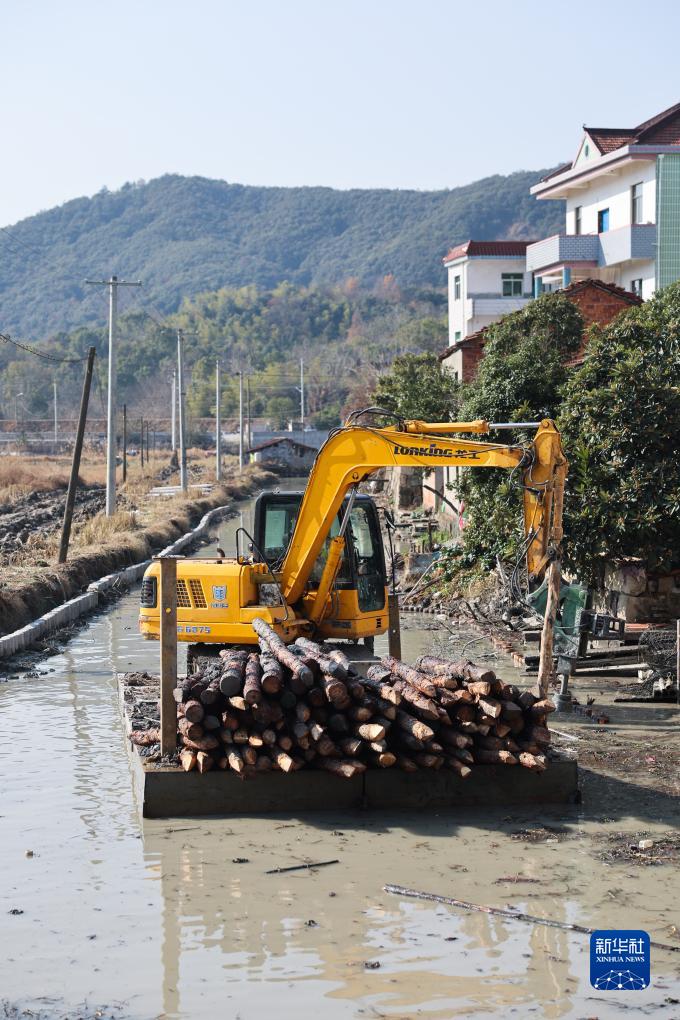 12月21日,浦阳江店口段综合治理工程的内河河道加固正在施工。