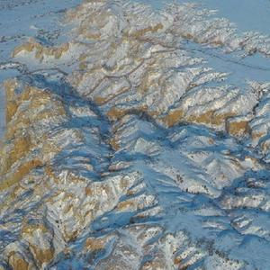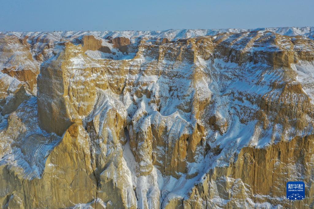 海上魔鬼城景区位于新疆阿勒泰地区福海县吉力湖东岸。冬日的海上魔鬼城银装素裹,错落有致的山体与皑皑白雪构成一幅壮丽的画卷。