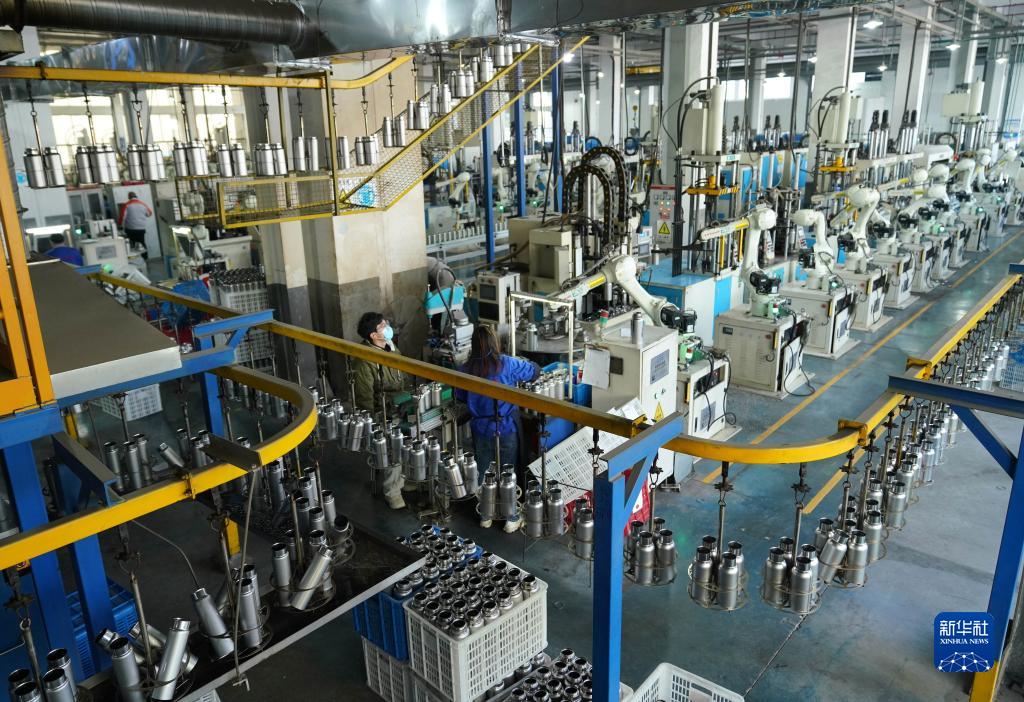 12月21日,浙江省永康市一家保温杯生产企业车间内,保温杯自动化生产流水线在工作中。
