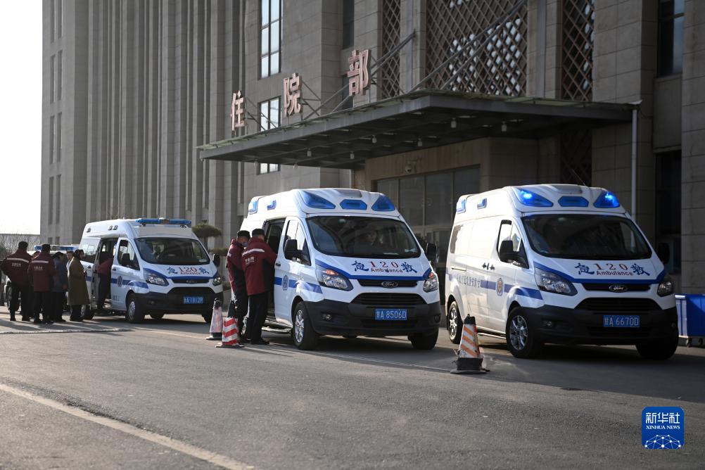12月21日,在临夏州人民医院,急救人员准备转运重症伤员。