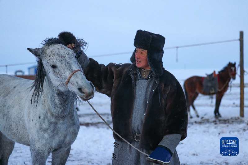 冬季对于草原上的牧民来说意味着挑战,严寒、积雪时刻影响着牧民的生产生活。牧民额尔敦达来居住在内蒙古呼伦贝尔市陈巴尔虎旗的东乌珠尔苏木额尔敦乌拉嘎查。冬季里,他依然十分忙碌,家中有100多只羊、50多头牛和60多匹马,除了日常喂草料、饮马、饮牛等工作外,他还有一项重要的爱好——赛马。
