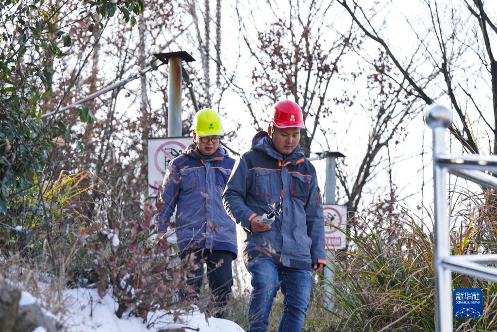 12月21日,安徽送变电工程有限公司员工张宁宁(右)、吴森沿500千伏文官5391线巡查。