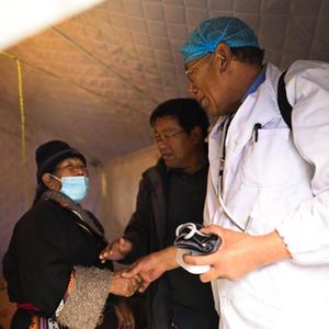 积石山6.2级地震发生后,青海省海东市循化撒拉族自治县道帏藏族乡牙木村部分房屋出现损毁,当地政府第一时间在牙木村建设安置点。因为年轻时就读于卫生学校、掌握基本的医疗技能,60岁的完么仁增成为安置点的义务卫生员,为村民量血压并普及健康知识。“我想做些力所能及的事帮助乡亲们。”完么仁增说。