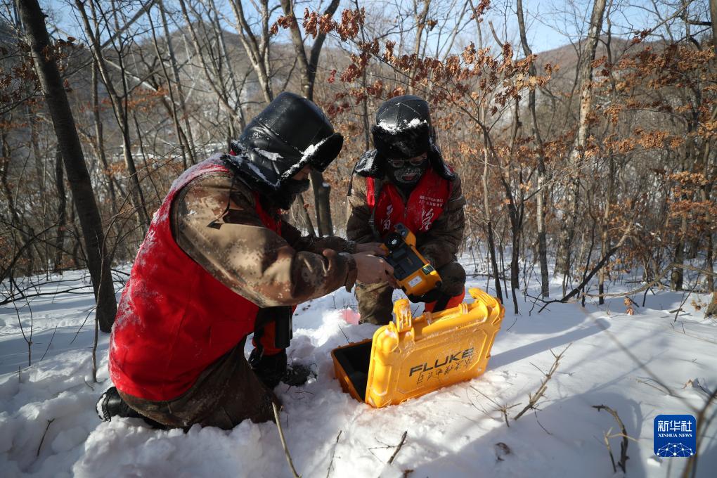 12月20日,国网本溪供电公司输电线路巡检工人在500千伏抚程线175号铁塔整理设备,准备进行检测工作。