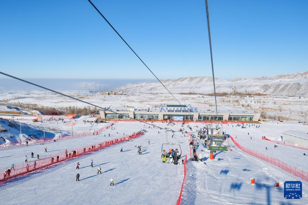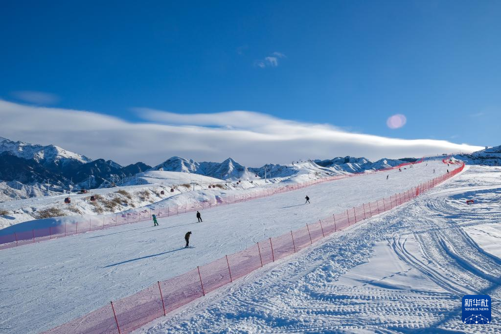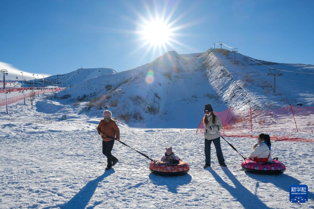 12月22日,游客在新疆阜康市天山天池国际滑雪场游玩。