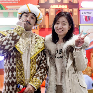 12月23日,在“阿凡提”号地铁专列中,饰演“阿凡提”的演员与乘客互动。