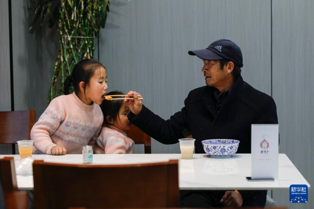 12月23日,在甘肃省临夏州积石山县县城,小朋友在饭店里用餐。