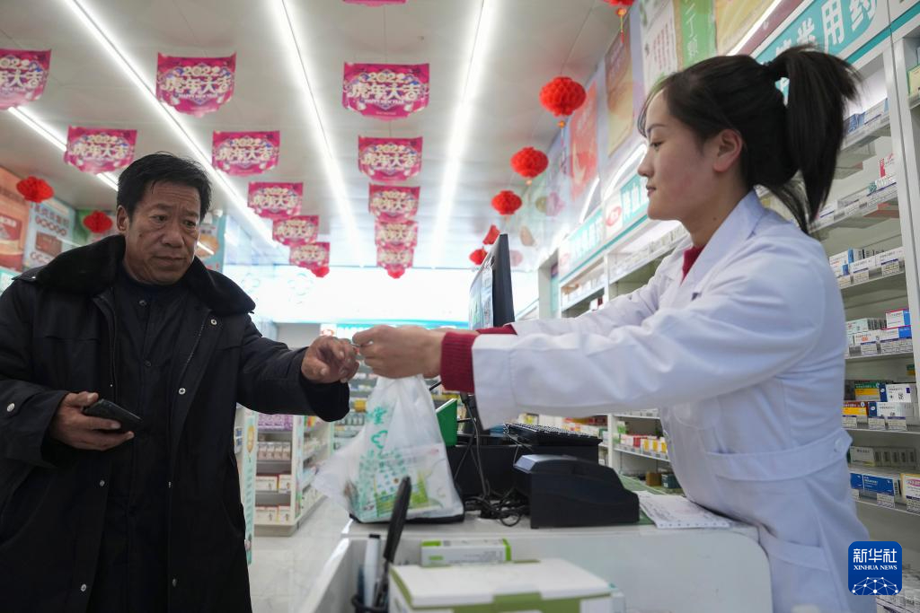 12月23日,在甘肃省临夏州积石山县县城,顾客在药店买药。
