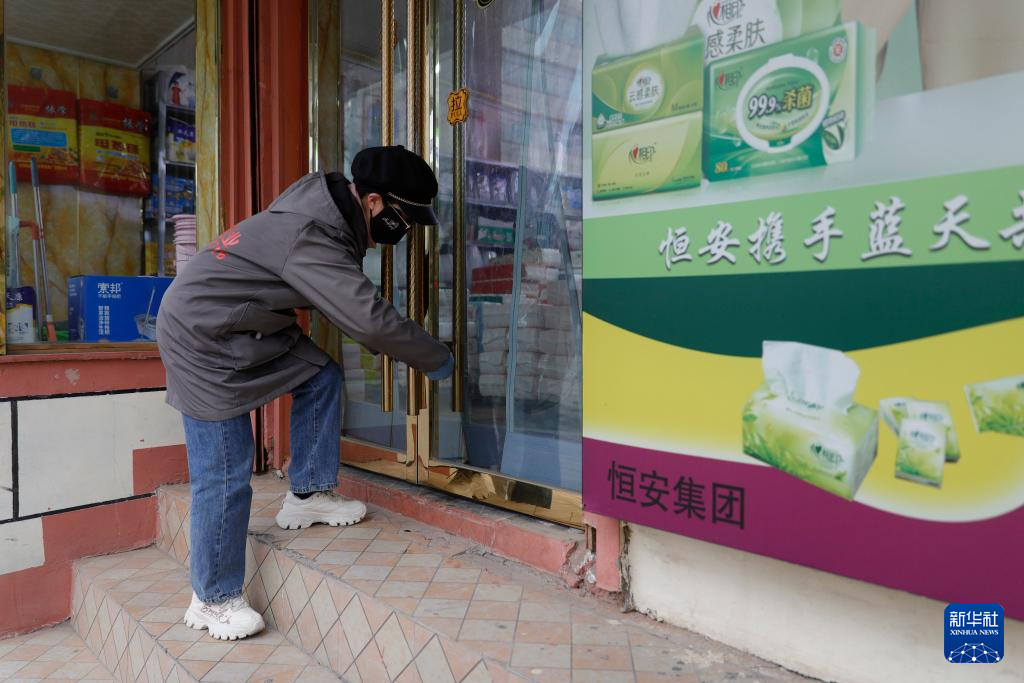12月23日,在甘肃省临夏州积石山县县城,店主准备打开店铺营业。
