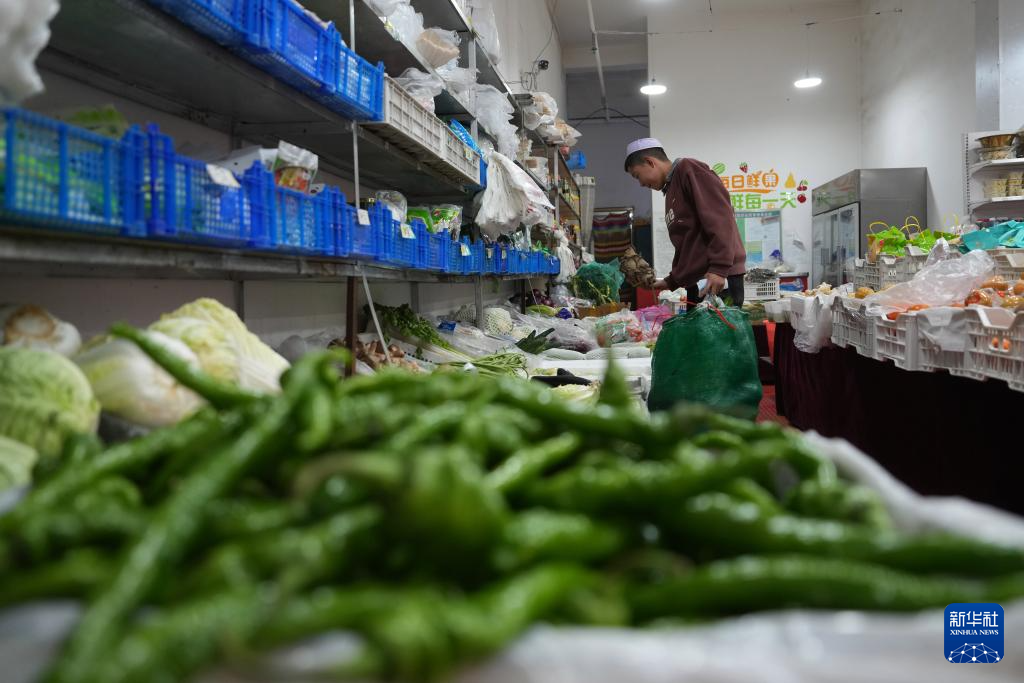 12月23日,在甘肃省临夏州积石山县县城,顾客在一家超市挑选蔬菜。