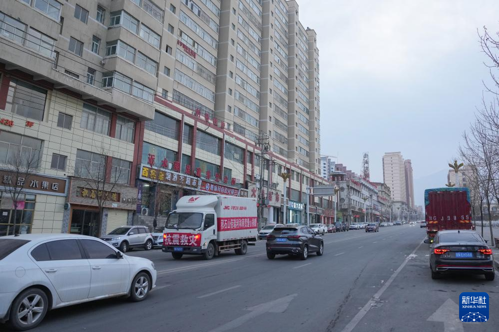这是12月23日拍摄的甘肃省临夏州积石山县县城的一条主干道。