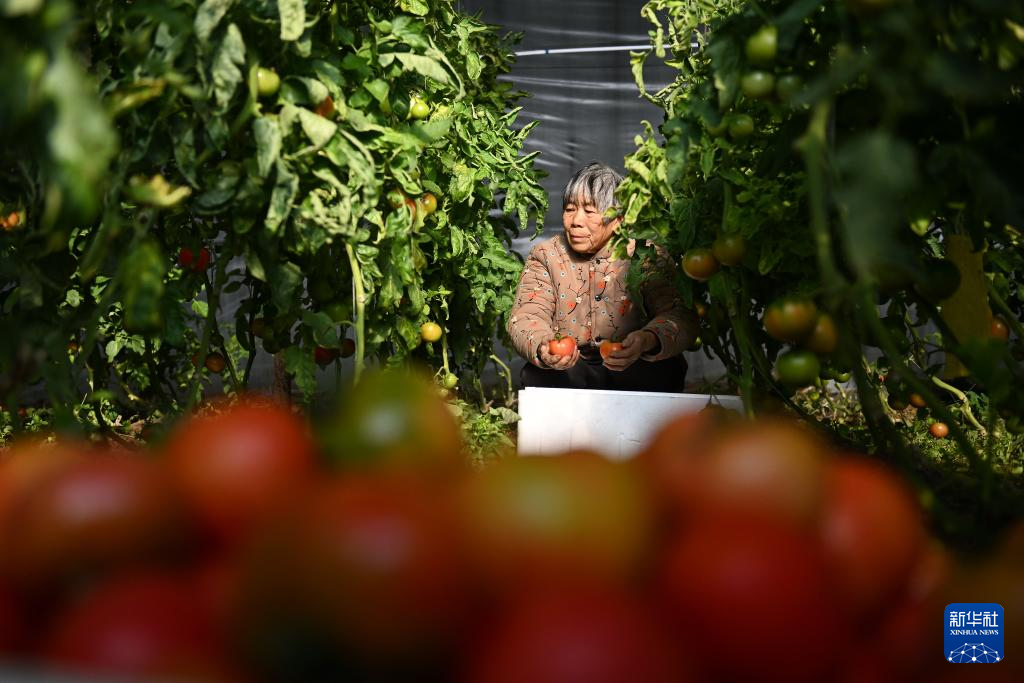 12月23日,农民在石家庄市栾城区苏园小镇温室大棚内采收铁皮西红柿。
