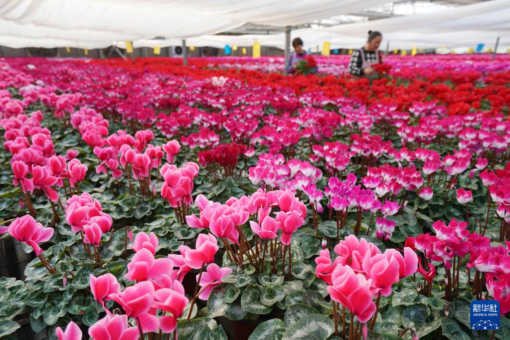 12月23日,花农在石家庄市栾城区农林高科技园区花卉种植大棚内打理仙客来。