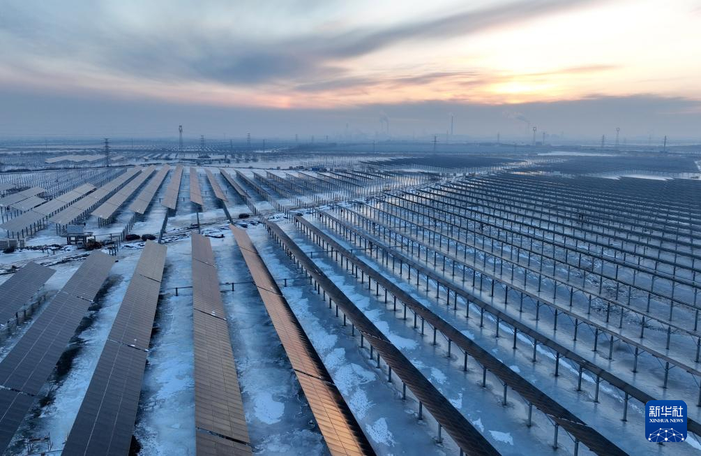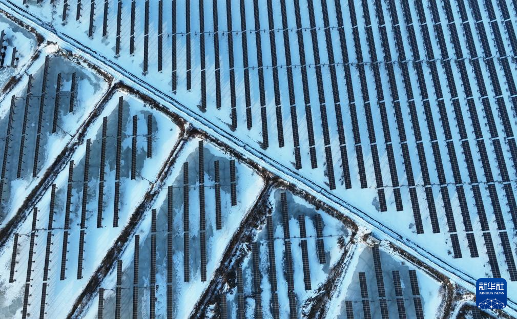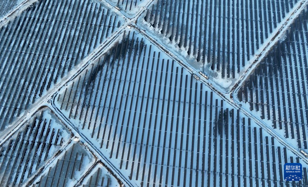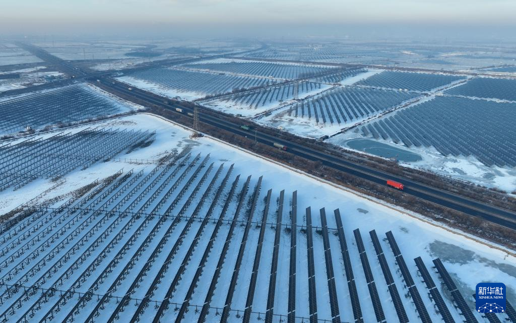 12月23日拍摄的河北省唐山市丰南区黑沿子镇一处“渔光互补”光伏发电场(无人机照片)。