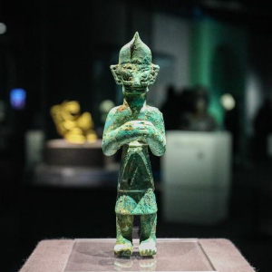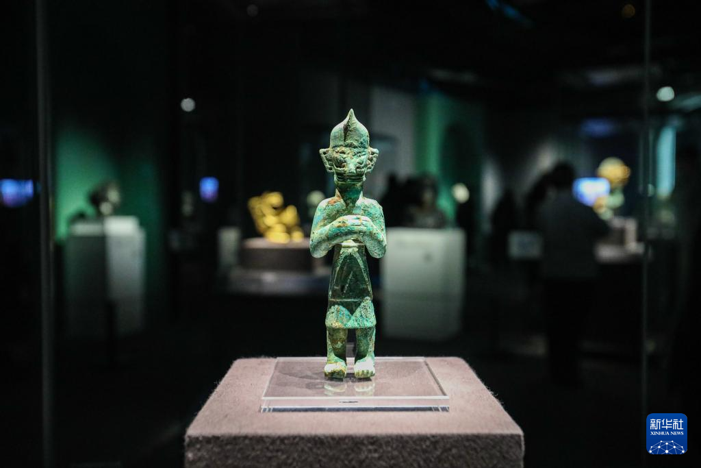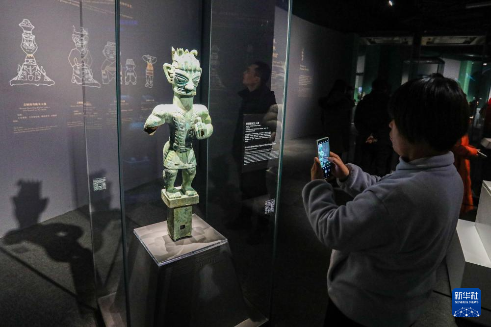 12月22日在“青铜之光”特展上拍摄的青铜小立人像。