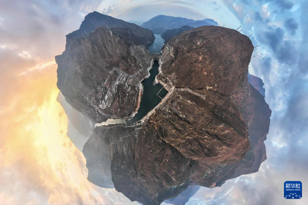 空中俯瞰乌东德水电站(无人机全景照片,12月22日摄)。