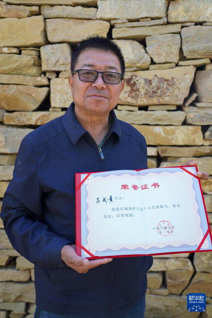 58岁的吕成贵是土生土长的老牛湾人,青年时期,他便对黄河边绵延的“边墙”、耸立的墩台和百姓聚居的古堡产生浓厚兴趣。在好奇心驱使下,他从走长城、拍长城逐渐发展为考察、研究长城。此后,吕成贵加入了中国长城学会等团体,持续不断地为家乡提出推动长城保护、合理开发的建议方案,让保护长城成为自己的一项事业。