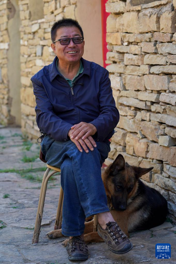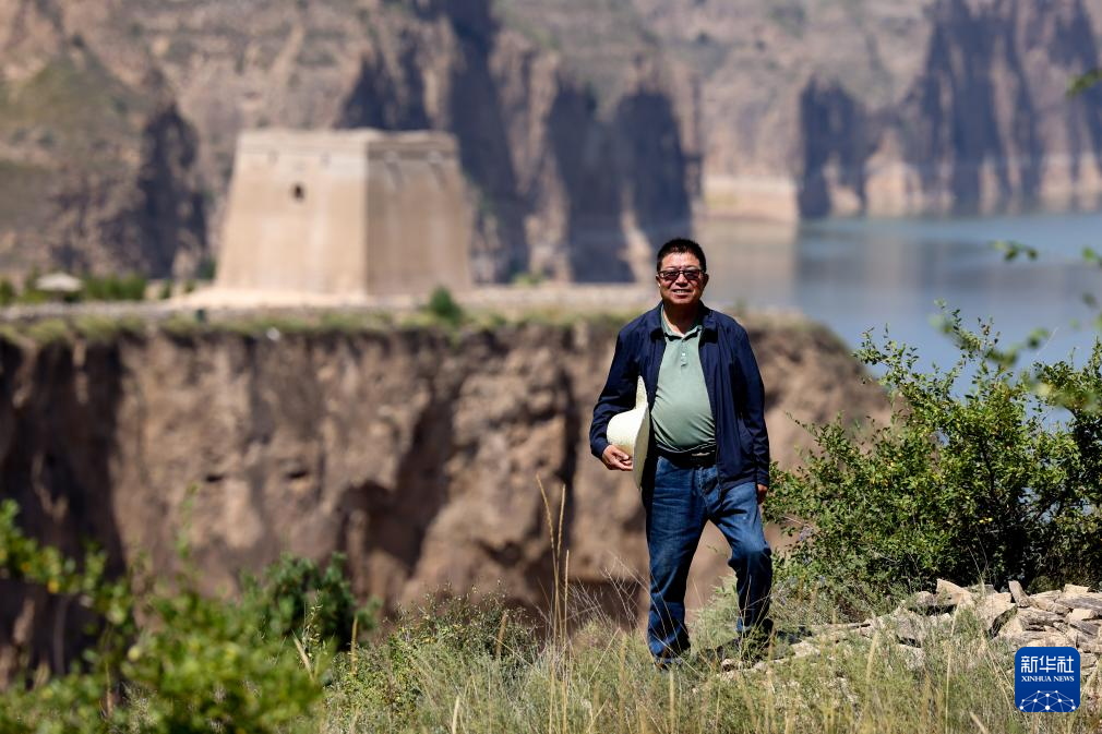 吕成贵在山西省偏关县老牛湾村留影(8月29日摄)。